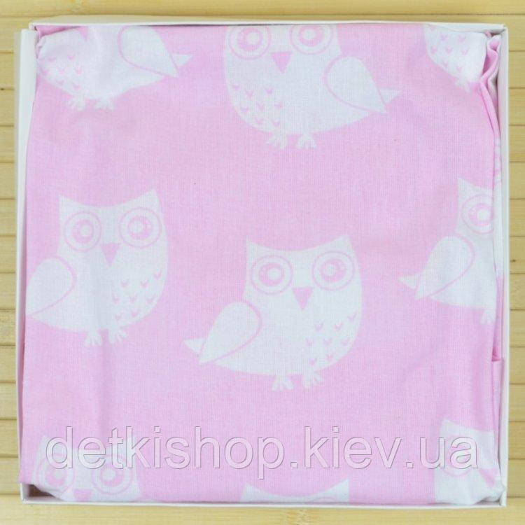 Простирадло дитяче на гумці 60х120 (Omali, рожеве із совами)